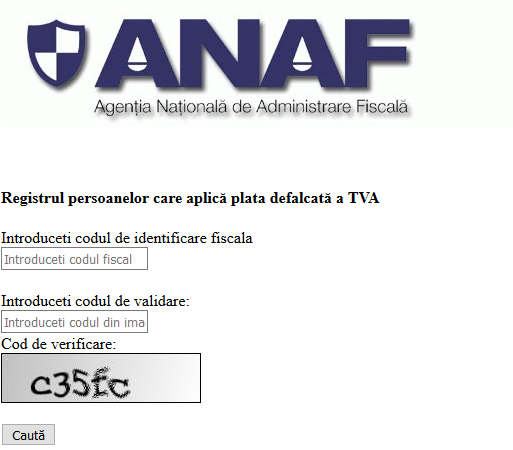 Registrul persoanelor care aplică plata defalcată a TVA – aplicație postata pe ANAF
