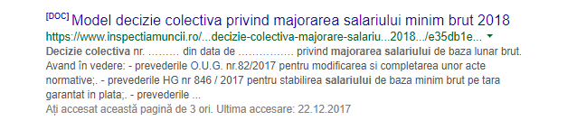ATENȚIE – putem emite „Decizie colectivă pentru majorare salariu minim brut angajați – începând cu 01.01.2018” – avem confirmare de la Inspecția Muncii! Atașat – MODEL pentru aceasta.