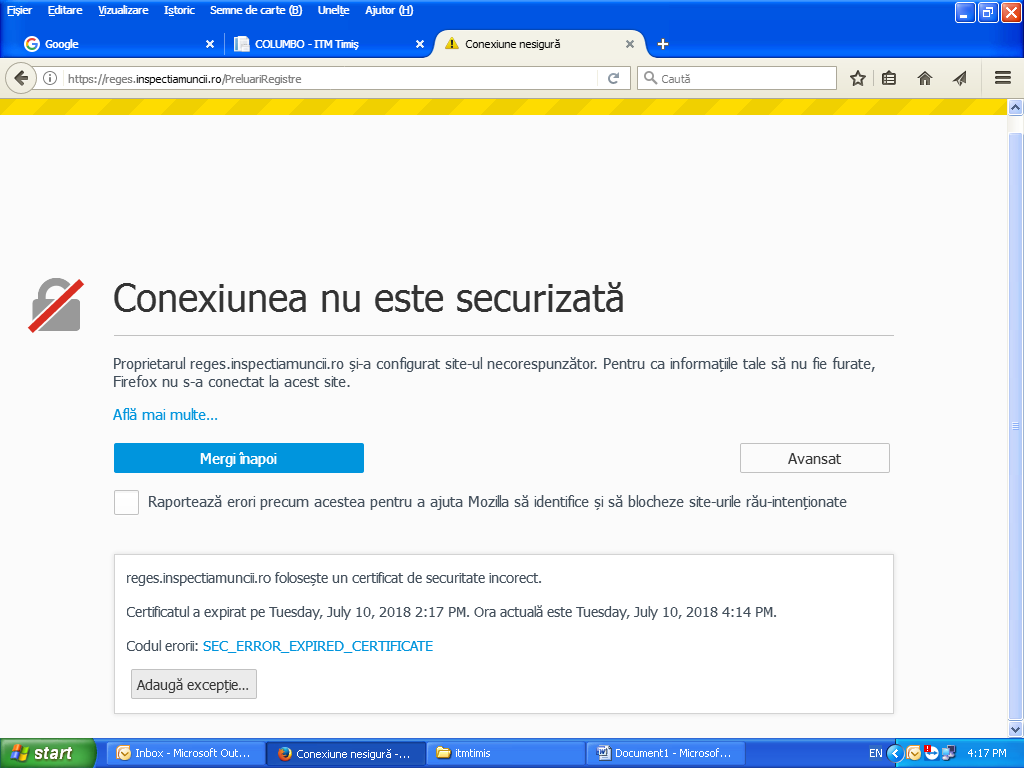 ITM oficial – instrucțiuni de rezolvare a erorii de pe Reges de azi (10.07.2018)