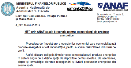 ”Mă bucur că noua conducere a ANAF a înțeles importanța unei atitudini corecte față de mediul de afaceri și și-a asumat eliminarea acestui obstacol din fața competiției loiale pe piața produselor energetice. Această abordare respectă angajamentul meu pentru încurajarea dezvoltării mediului de afaceri autohton și reprezintă o premisă importantă pentru succesul modernizării și eficientizării activității ANAF. Rolul statului este de a încuraja mediul de afaceri și de a le crea condițiile pentru un comportament corect. Iar, dacă sunt identificate derapaje, intervenția statului trebuie să fie punctuală, proporțională și adecvată nivelului riscului identificat, fără afectarea activității tuturor participanților la piață.” a precizat Eugen Teodorovici, ministrul Finanțelor Publice.