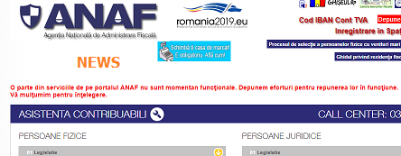 „O parte din serviciile de pe portalul ANAF nu sunt momentan funcţionale. Depunem eforturi pentru repunerea lor în funcţiune” – asa reiese din ultimul mesaj de avertizare postat pe site-ul oficial al ANAF (dupa cum se observa si in imaginea de mai jos).