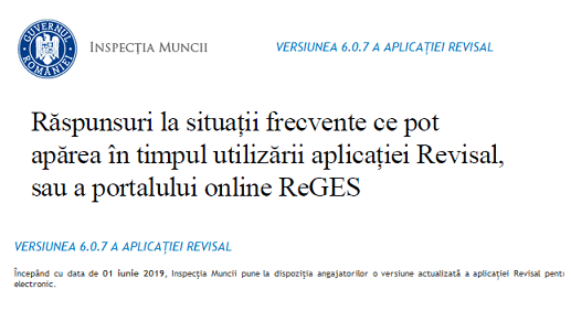 […] – Răspunsuri la întrebări frecvente privind REVISAL 6.0.7 – revizuit în data de 01.06.2019 (oficial) – CLICK AICI […]