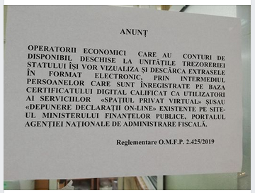 Multumita colegilor de pe grupul - Contabili pe Facebook - va informam ca, Trezoreriile judetene/municipale au inceput de azi sa posteze atentionari cu privire la eliberarea extraselor de cont exclusiv online (OMFP 2425/2019) - MAI MULTE DETALII AICI. Anuntul de mai jos este de la...NEWS - Trezoreriile din județe au început sa afișeze ATENȚIONĂRI cu privire la eliberarea extraselor numai online