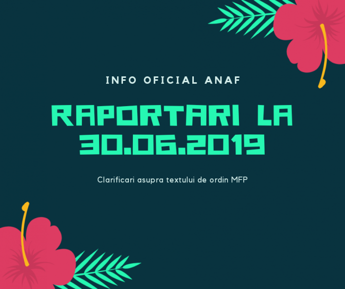 Avand in vedere aparitia ORDINULUI MINISTRULUI FINANTELOR PUBLICE Nr. 2493/08.07.2019 – text aici – pentru aprobarea Sistemului de raportare contabila la 30 iunie 2019 a operatorilor economici, precum și pentru modificarea și completarea unor prevederi contabile – in Monitorul Oficial nr. 596 din 19.07.2019 – ANAF vine cu o serie de clarificari pe textul ordinului.
