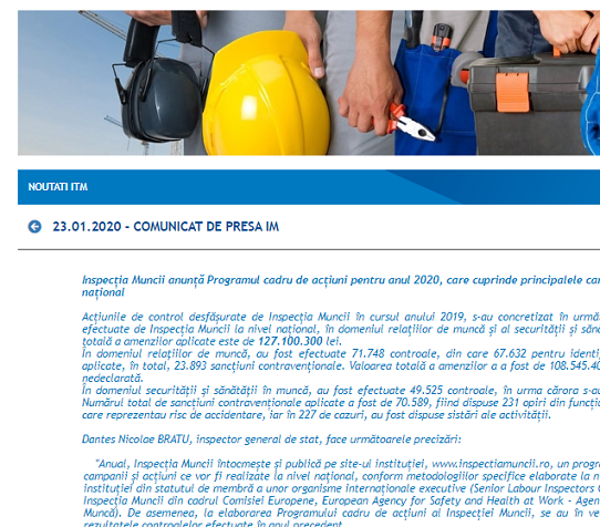 Inspecția Muncii anunță Programul cadru de acțiuni pentru anul 2020 – campanii controale