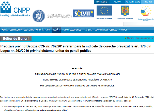 Din dorința de a aduce clarificările necesare asupra modului unitar de aplicare a prevederilor art. 170 din Legea nr.263/2010 după data de 10 februarie 2020, data publicării în Monitorul Oficial al României a Deciziei nr.702/2019 a Curții Constituționale, formulăm următoarele precizări cu caracter general: