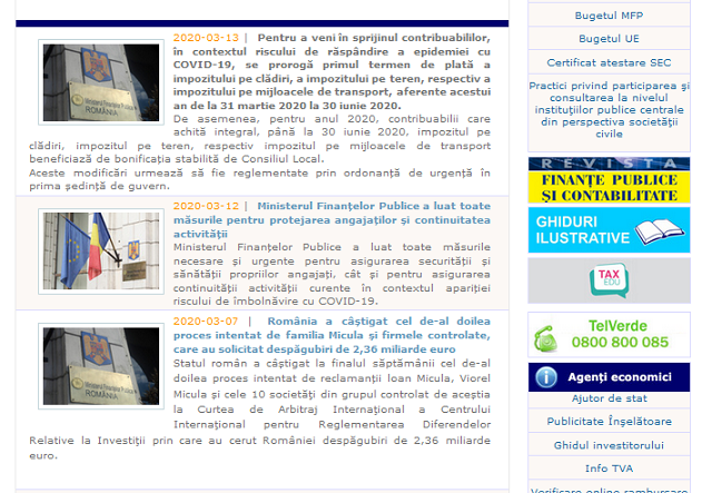 Pentru a veni în sprijinul contribuabililor, în contextul riscului de răspândire a epidemiei cu COVID-19, MFP comunica pe pagina oficiala de Facebook ca – se prorogă primul termen de plată a impozitului pe clădiri, a impozitului pe teren, respectiv a impozitului pe mijloacele de transport, aferente acestui an de la 31 martie 2020 la 30 iunie 2020.