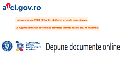 Multumita colegilor de pe – Contabili pe Facebook – va informam ca, potrivit unei avertizari postate recent pe platforma – www.aici.gov.ro – se pare ca incepand cu ora 19:00, 30 Aprilie 2020, platforma se va afla in mentenata.