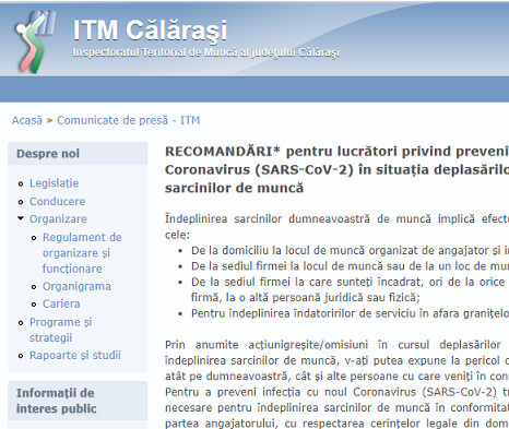 AcasăCodul munciiITM - recomandări pentru lucrători privind prevenirea infecției, în situația deplasărilor pentru...
