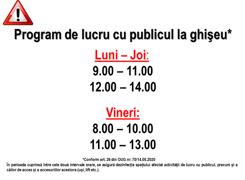 Obligațiile de mai sus – sunt stabilite prin Ordinul comun al Ministrului Sănătății și al Ministrului Afacerilor Interne nr. 874/81/22.05.2020 – DESCARCA DE AICI – privind instituirea obligativităţii purtării măştii de protecţie, a triajului epidemiologic şi dezinfectarea obligatorie a mâinilor pentru prevenirea contaminării cu virusul SARS-CoV-2 pe durata stării de alertă.