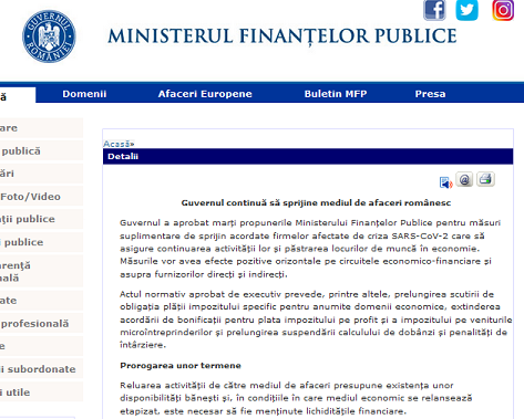 ✅ Guvernul a aprobat propunerile MFP pentru prelungirea aplicării următoarelor măsuri fiscale până la data de 25 octombrie 2020, inclusiv:
