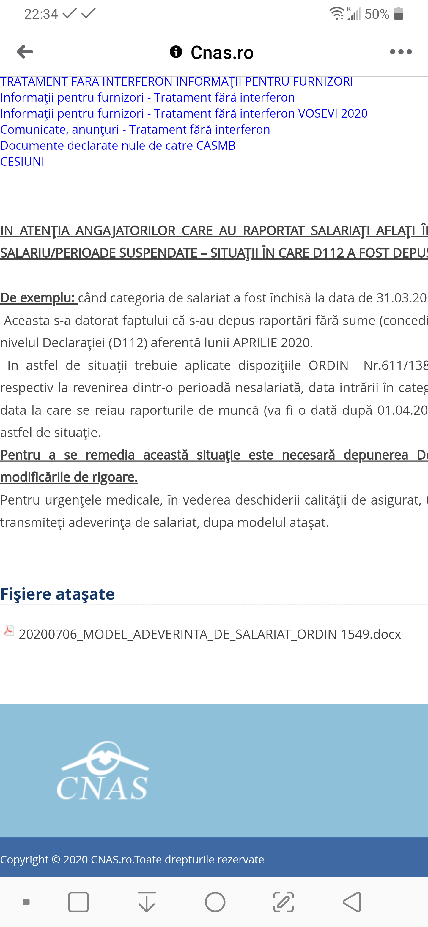 Pentru urgenţele medicale, ȋn vederea deschiderii calităţii de asigurat, temporar/manual, va rugăm să ne transmiteţi adeverinţa de salariat, dupa modelul ataşat – CLICK AICI
