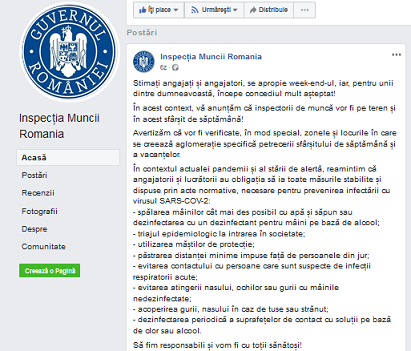 Avand in vedere că inspectorii de muncă vor fi pe teren și în acest sfârșit de săptămână - va avertizăm si noi - că vor fi verificate, în mod special, zonele și locurile în care se creează aglomerație specifică petrecerii sfârșitului de săptămână și...Ce obligații au angajatorii și lucrătorii (conform actelor normative) - pentru prevenirea infectării cu virusul SARS-COV-2 (oficial)