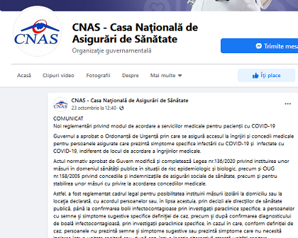 Guvernul a aprobat o Ordonanță de Urgență prin care se asigură accesul la îngrijiri și concedii medicale pentru persoanele asigurate care prezintă simptome specifice infectării cu COVID-19 și infectate cu COVID-19, indiferent de locul de acordare a îngrijirilor medicale.