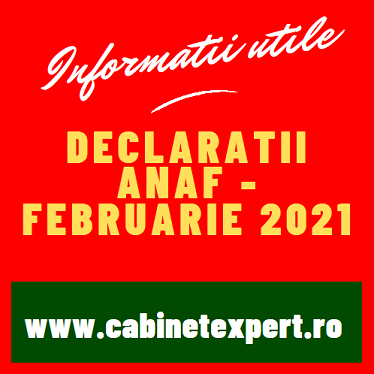 Pe parcursul si in special al finalul lunii FEBRUARIE 2021 (mai exact in perioada 01-28.02.2021), trebuie depuse la unitățile teritoriale MFP/ANAF (ghișeu sau online), după caz, declarațiile fiscale precizate mai jos.