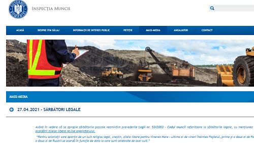 Având în vedere că se apropie sărbătorile pascale, ITM-urile reamintesc prevederile Legii nr. 53/2003 – Codul muncii referitoare la sărbătorile legale, cu mențiunea că obligația acordării zilelor libere revine angajatorului.