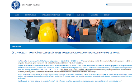 Modelul-cadru al contractului individual de muncă, prevăzut în anexa la Ordinul ministrului muncii şi solidarităţii sociale nr. 64/2003 a fost completat și modificat prin Ordinul nr. 585 publicat în Monitorul Oficial nr. 712 din 19 iulie 2021.