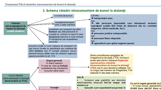 Va supunem atentiei un material oficial (9 pagini) – elaborat de DGRFP Brasov (institutie careia ii multumim pentru posibilitatea preluarii informatiilor) – ce prezinta sub forma de tabel si text, o serie de informatii cu privire la tratamentul TVA al vânzărilor intracomunitare de bunuri la distanţă şi a livrărilor de bunuri interne efectuate de interfeţele electronice care facilitează aceste livrari – începând cu 1 iulie 2021 (material publicat in data de 26.08.2021).
