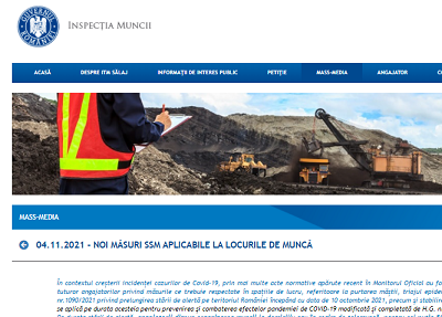 Cu fiecare prelungire a stării de alertă, angajatorilor le este reamintită obligația generală de a respecta măsurile de sănătate și securitate în muncă (SSM). Astfel, organizarea activității la locul de muncă se realizează cu respectarea prevederilor legale emise de autoritățile competente în ceea ce privește prevenirea contaminării cu virusul SARS-CoV-2 și pentru asigurarea securității și sănătății în muncă a lucrătorilor, ținând cont și de gradul de vaccinare a angajaților de la acel loc de muncă.