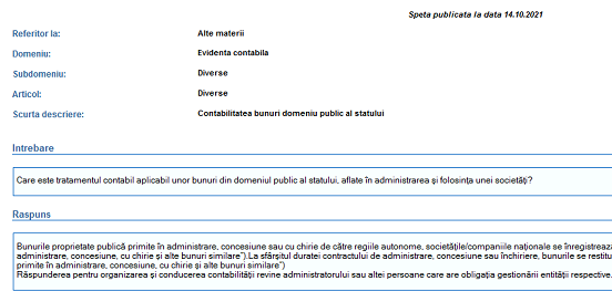 Intrebare – Care este tratamentul contabil aplicabil unor bunuri din domeniul public al statului, aflate în administrarea și folosința unei societăți?