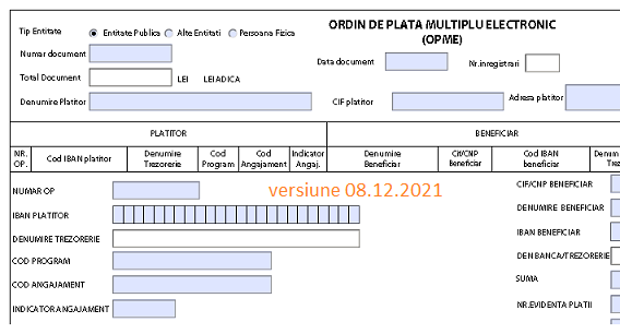 Ordinul de plată multiplu electronic (OPME) poate fi utilizat de către instituțiile publice care sunt înregistrate în Registrul entitaților publice și de către operatorii economici și alte entități decât instituții publice pentru efectuarea de plăți din conturile deschise la unitățile Trezoreriei Statului prin care își desfășoară activitatea proprie.