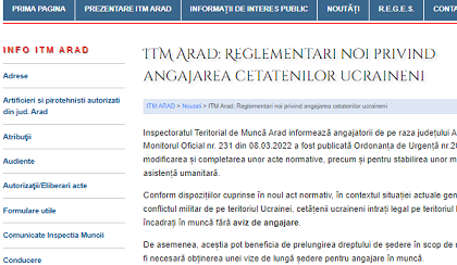 Inspectoratele Teritoriale de Muncă informează angajatorii de pe raza fiecarui județ, că în Monitorul Oficial nr. 231 din 08.03.2022 a fost publicată Ordonanța de Urgență nr.20 privind modificarea și completarea unor acte normative, precum și pentru stabilirea unor măsuri de sprijin și asistență umanitară – text integral .