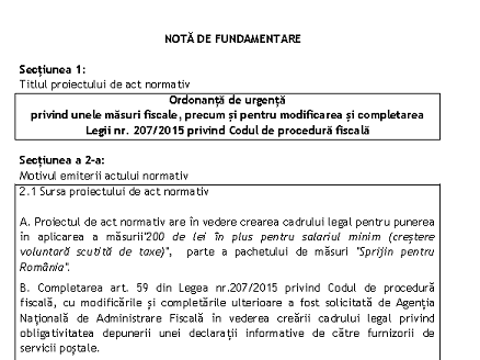 Ministerul Finanțelor a elaborat actul normativ necesar – DESCARCA DE AICI – pentru îndeplinirea măsurii adoptate în cadrul programului guvernamental ”Sprijin pentru România”,”200 de lei în plus pentru salariul minim (creștere voluntară scutită de taxe)”.