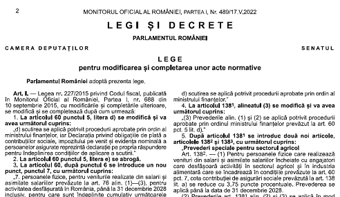 […] Monitorul Oficial al României nr.489/17.05.2022 a fost publicată Legea nr.135/13.05.2022 – TEXT INTEGRAL AICI – pentru modificarea și completarea unor acte […]