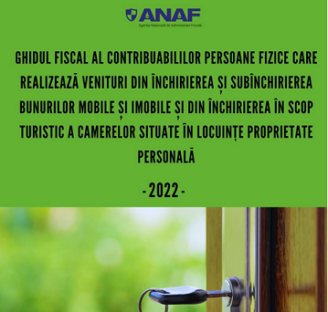 Agenția Națională de Administrare Fiscală a actualizat recent (17.05.2022) – ghidul fiscal al contribuabililor persoane fizice care realizează venituri din închirierea și subînchirierea bunurilor mobile și imobile și din închirierea în scop turistic a camerelor situate în locuințe proprietate personală – material actualizat la 23 de pagini si publicat pe portalul instituției, www.anaf.ro, la rubrica Asistență contribuabili/Servicii oferite contribuabililor/Ghiduri curente și alte materiale informative. .