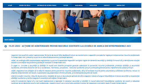 Inspectorii de muncă din cadrul Inspectoratelor Teritoriale de Muncă – desfășoară acțiuni de monitorizare a respectării prevederilor legale privind prevenirea riscurilor profesionale în întreprinderi mici, precum şi cu privire la măsurile de prevenire şi protecţie aplicate.