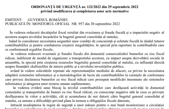 Având in vedere ca, in Monitorul Oficial nr. 957 din 30 septembrie 2022, a fost publicat Ordonanța de urgență a Guvernului nr. 132 din 29 septembrie 2022 – text aici – privind modificarea şi completarea unor acte normative – va supunem atentiei un info oficial cu privire la acesta – multumita AJFP Dambovita (institutie careia ii multumim pentru posibilitatea preluarii informatiilor).