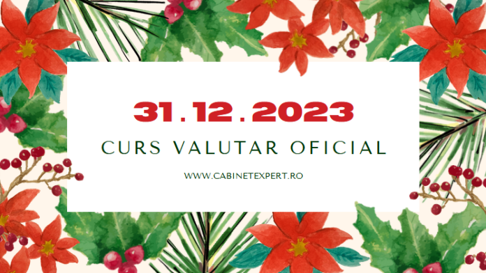 Conform celor publicate de Banca Naţională a României, cursul valabil la 31.12.2023 (comunicat de BNR la 29.12.2023) este de – 4,9746 lei pentru un euro – curs ce se va aplica la calculul cifrei de afaceri pentru anul 2023, la intocmirea bilanturior, sau la calculul altor indicatori (in 2024).