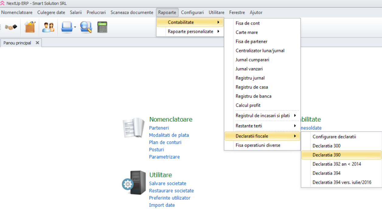 Prelucrarea declarației D390 prin intermediul NextUP ERP
