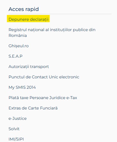 #2 accesează secțiunea Depunere declarații, pe baza link-ului de acces: https://decl.anaf.mfinante.gov.ro/my.policy;