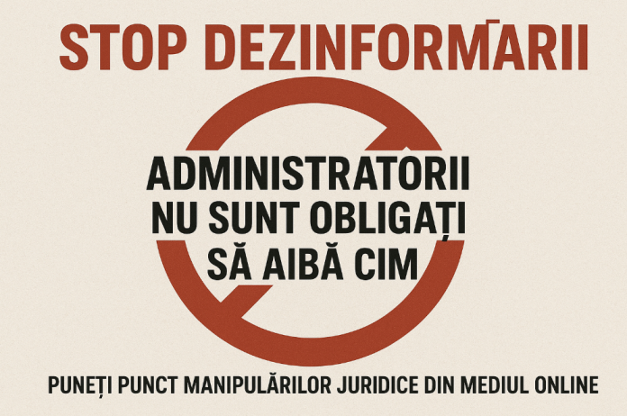 STOP DEZINFORMĂRII – Administratorii NU sunt obligați să aibă CIM (puneți punct manipulărilor juridice din mediul online)