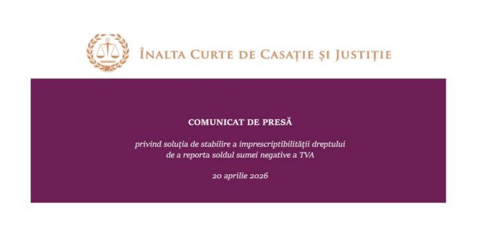 Ieri, Completul pentru soluționarea recursului în interesul legii, compus din 25 judecători ai instanței supreme, a stabilit că în interpretarea și aplicarea art. 147 indice 3 din Codul fiscal 𝐷𝑟𝑒𝑝𝑡𝑢𝑙 𝑝𝑒𝑟𝑠𝑜𝑎𝑛𝑒𝑖 𝑖𝑚𝑝𝑜𝑧𝑎𝑏𝑖𝑙𝑒 𝑑𝑒 𝑎 𝑟𝑒𝑝𝑜𝑟𝑡𝑎 𝑠𝑜𝑙𝑑𝑢𝑙 𝑠𝑢𝑚𝑒𝑖 𝑛𝑒𝑔𝑎𝑡𝑖𝑣𝑒 𝑎 𝑇𝑉𝐴 𝑖̂𝑛 𝑑𝑒𝑐𝑜𝑛𝑡𝑢𝑙 𝑑𝑒 𝑇𝑉𝐴 𝑎𝑓𝑒𝑟𝑒𝑛𝑡 𝑝𝑒𝑟𝑖𝑜𝑎𝑑𝑒𝑙𝑜𝑟 𝑓𝑖𝑠𝑐𝑎𝑙𝑒 𝑢𝑙𝑡𝑒𝑟𝑖𝑜𝑎𝑟𝑒 𝑛𝑢 𝑒𝑠𝑡𝑒 𝑝𝑟𝑒𝑠𝑐𝑟𝑖𝑝𝑡𝑖𝑏𝑖𝑙.